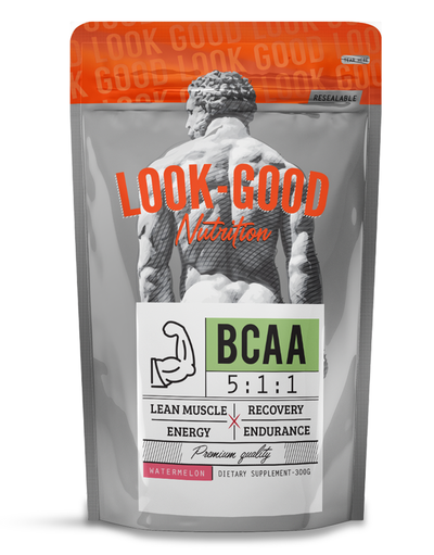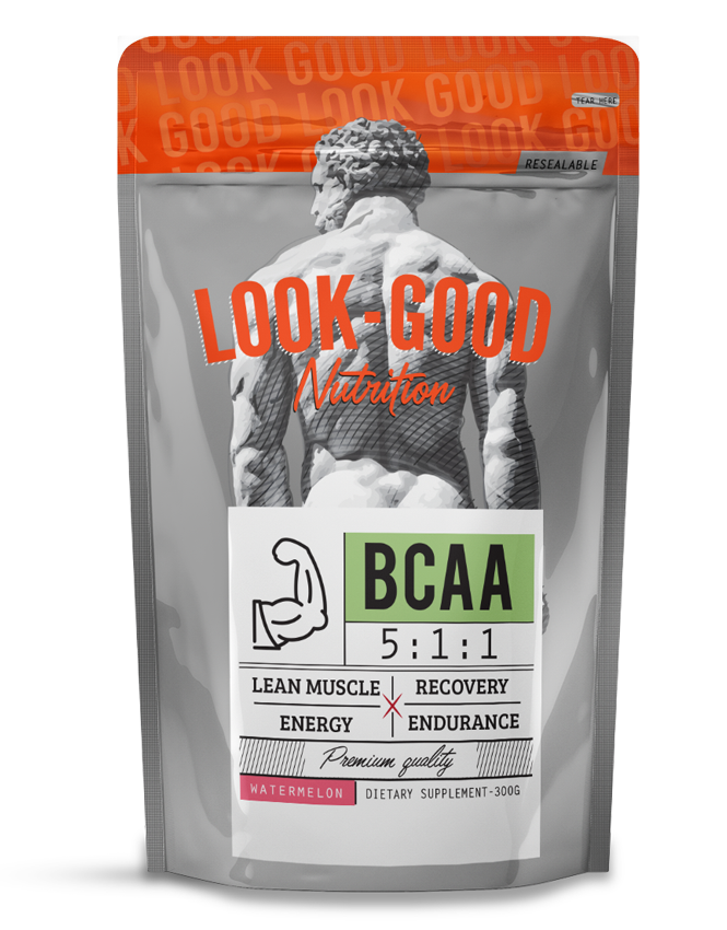Το BCAA της Look Good Naked περιέχει τα τρία Αμινοξέα Διακλαδισμένης Αλυσίδας(Branched Chain Amino Acids) που είναι η Λευκίνη, Βαλίνη και η Ισολευκίνη σε αναλογία 5:1:1. Είναι και τα τρία βασικά αμινοξέα, δηλαδή δε μπορεί να τα συνθέσει ο οργανισμός μας και πρέπει να λαμβάνονται οπωσδήποτε από την τροφή, ενώ έχουν αναγνωριστεί ως σημαντικοί παράγοντες που εμπλέκονται στην παραγωγή μυϊκών πρωτεϊνών-κλειδιών που μπορούν να προάγουν θετικό πρωτεϊνικό ισοζύγιο και μυϊκή υπερτροφία.