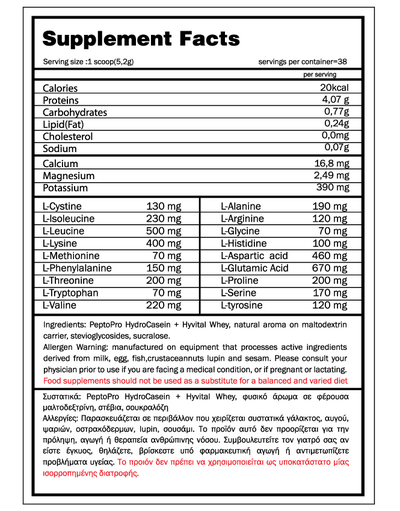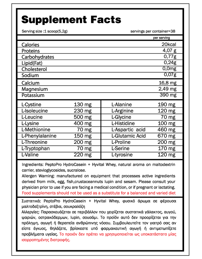 Δοσολογία: 3 φορές την ημέρα ενδιάμεσα από τα γέυματα.Κάθε δόση ένα scoop(5.2gr)
