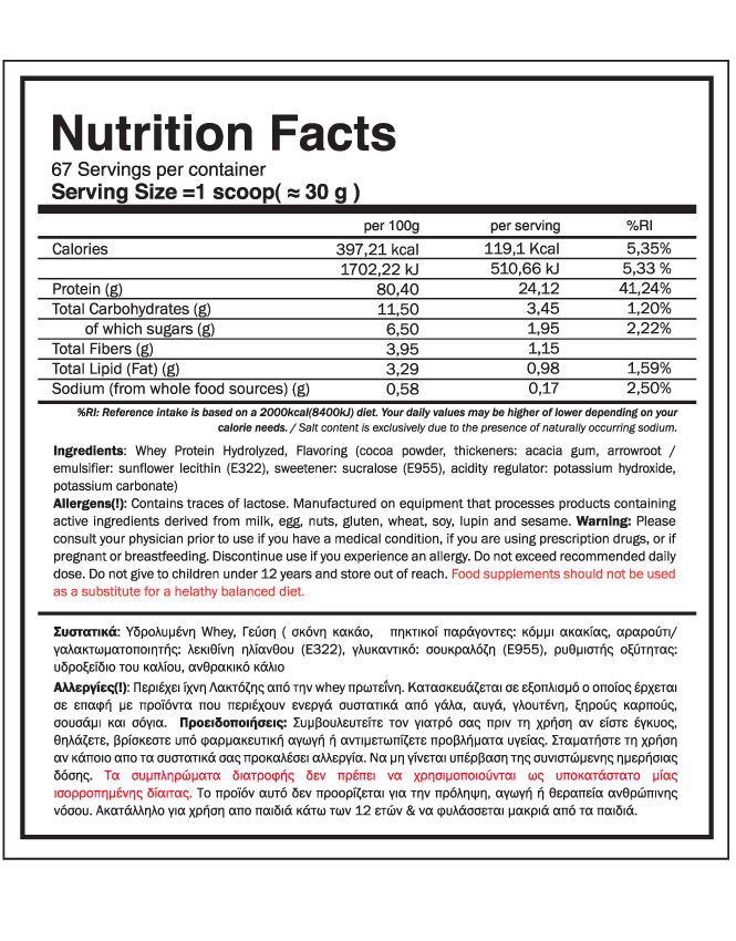 Για βέλτιστα αποτελέσματα προτείνουμε να καταναλώσετε μια από τις δόσεις κοντά στην προπόνηση. Λόγω της υδρόλυσης μπορεί να καταναλωθεί πριν/κατά τη διάρκεια/μετά την προπόνηση, καθώς όχι μόνο έχει ταχύτερο ρυθμό απορρόφησης από την απλή whey, αλλά δεν προκαλεί καθόλου φούσκωμα, οπότε είναι κατάλληλη ακόμα και για άτομα με πεπτικά προβλήματα.